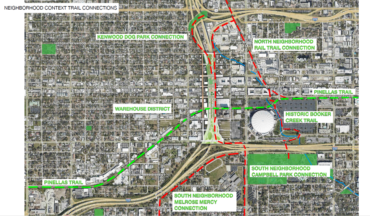 The big Trails Crossing project could add an expansive linear park to St. Pete